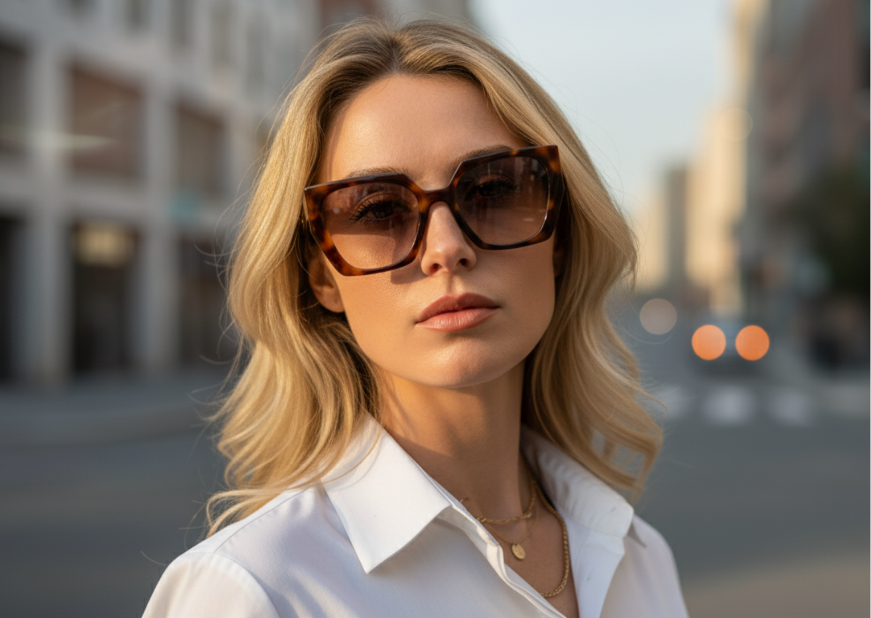 Proteção UV completa, combinando moda e bem-estar para seus olhos.